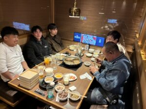 入社を記念した歓迎会での一枚。しゃぶしゃぶを囲んで、和やかな時間になりました。