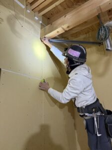 見えなくなる部分ではありますが、間仕切り壁の精度や強度を左右する重要な工程のため、一本一本丁寧に施工しています。