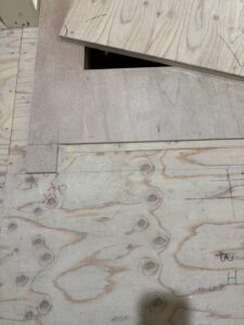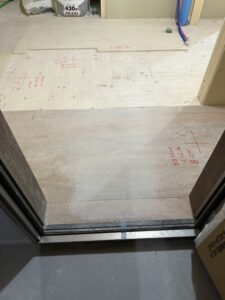 この作業は、施工箇所に合わせて合板を正確にカットし、隙間ができないよう、ミリ単位で調整されています。